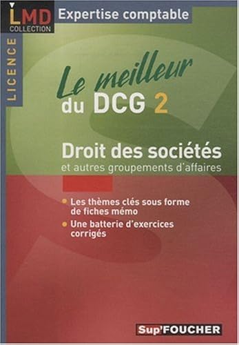 DCG 2 Droit des sociétés et autres groupements de ~ Cet ouvrage a été conçu pour préparer l'épreuve n° 2 du droit des sociétés et autres groupements d'affaires pour l'obtentionn du diplôme de Comptabilité et de gestion (DCG), niveau L (Licence). Il a pour objectif de favoriser l'acquisition par les étudiants des éléments essentiels qui composent l'environnement juridique dans lequel vivent les entreprises. Diverses branches du .